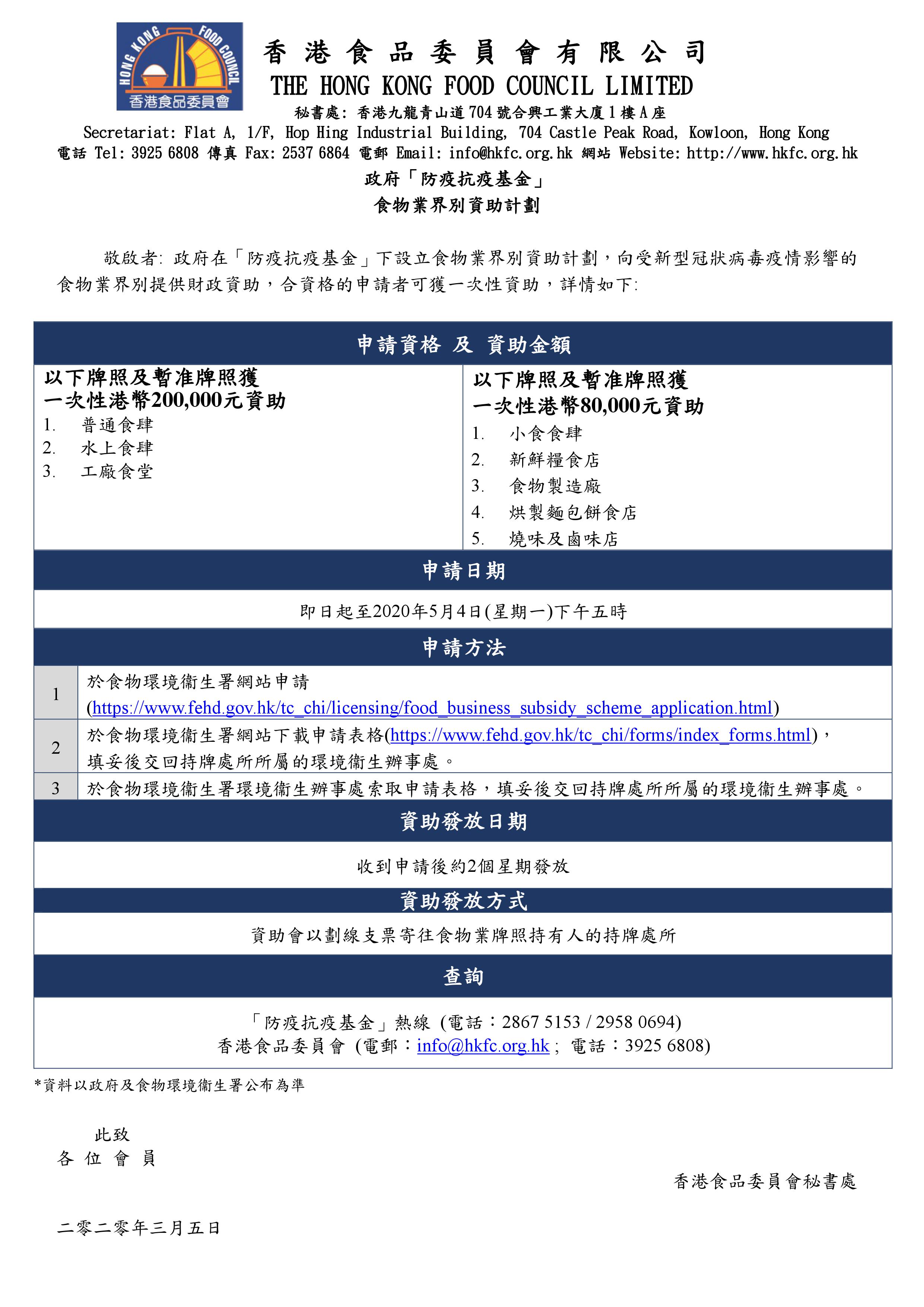 餐飲處… Read More政府「防疫抗疫基金」鮮活副食品批發商、本地農業生產者及漁業資助[香港食品委員會] 香港食米供應情況政府「防疫抗疫基金」8 萬元零售業資助計劃為支援受新型冠狀病毒肺炎疫情影響的零售商戶,政府將在「防疫抗疫基金」下撥款56億元推行「零售業資助計劃」,每家合資格零售商戶可獲得一次過8萬元的資助,詳情如下: